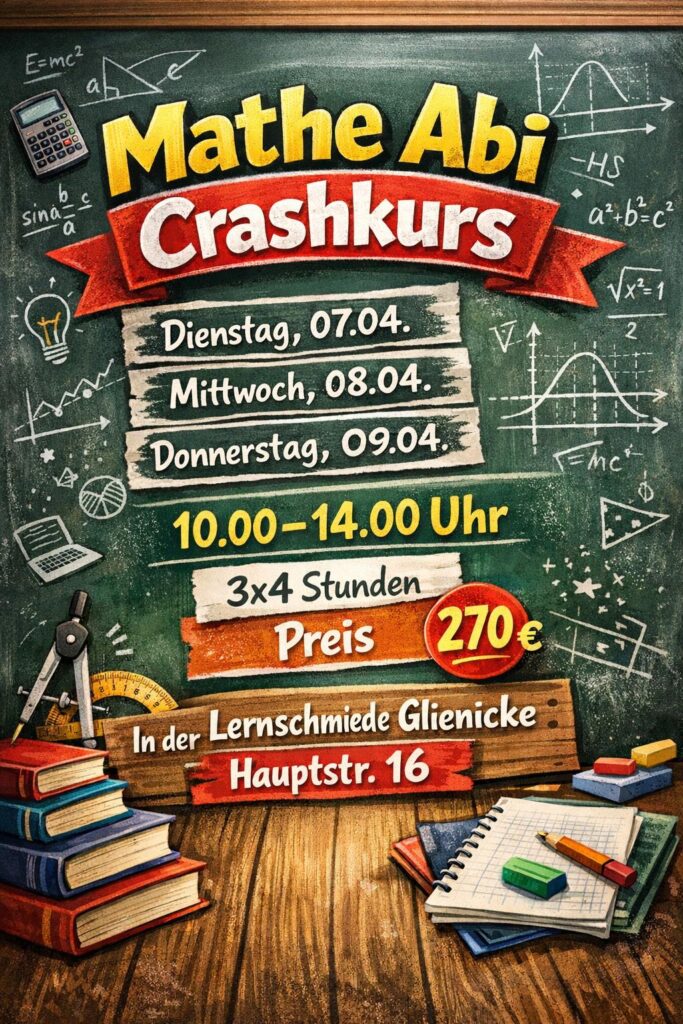 | Mathe Abi Crashkurs | 7.4./8.4./9.4.2026 | Glienicke |